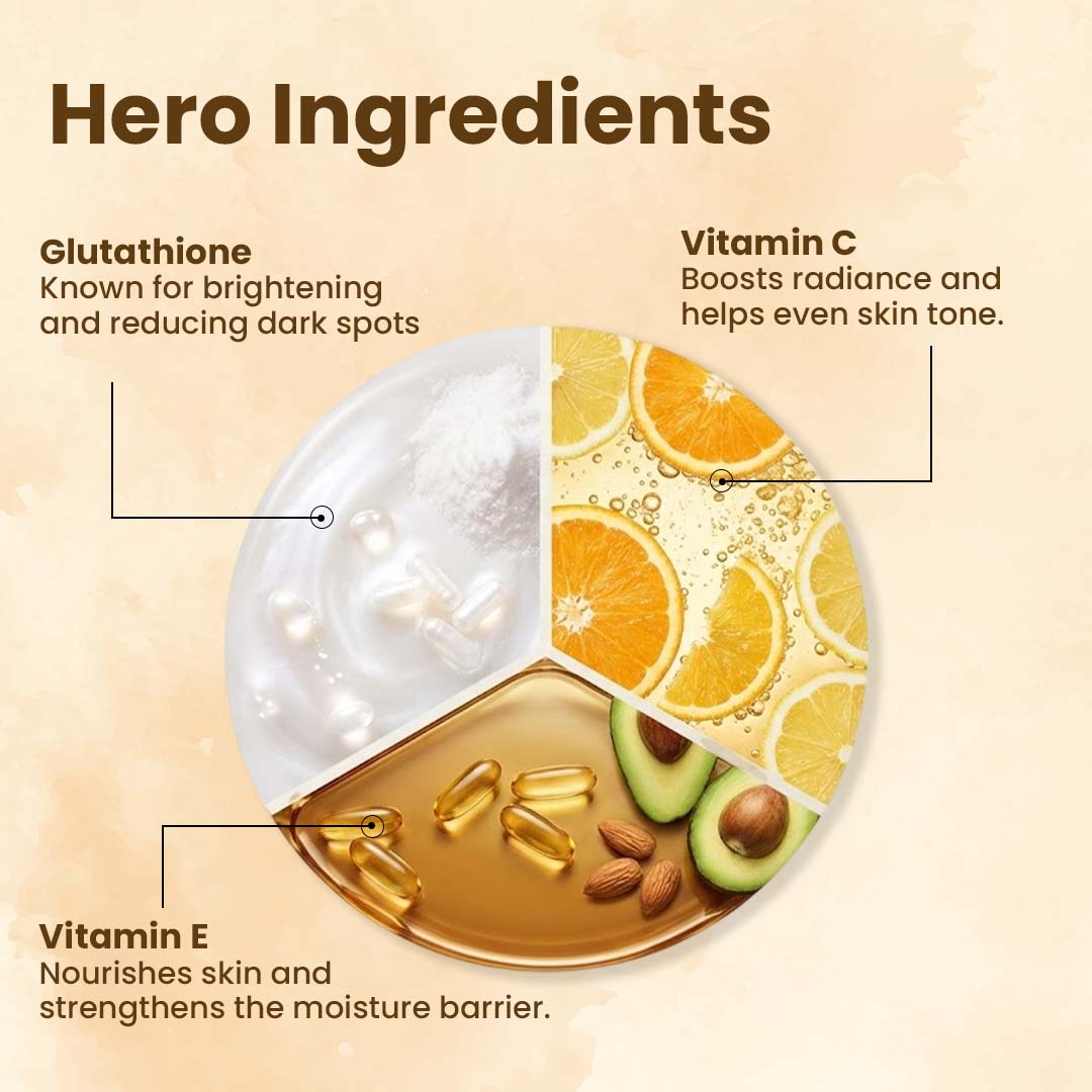 Its powerful blend of Glutathione, Vitamin C, and Vitamin E works together to reduce dark spots, brighten skin tone, strengthen the barrier and give you a soft, youthful glow every morning.